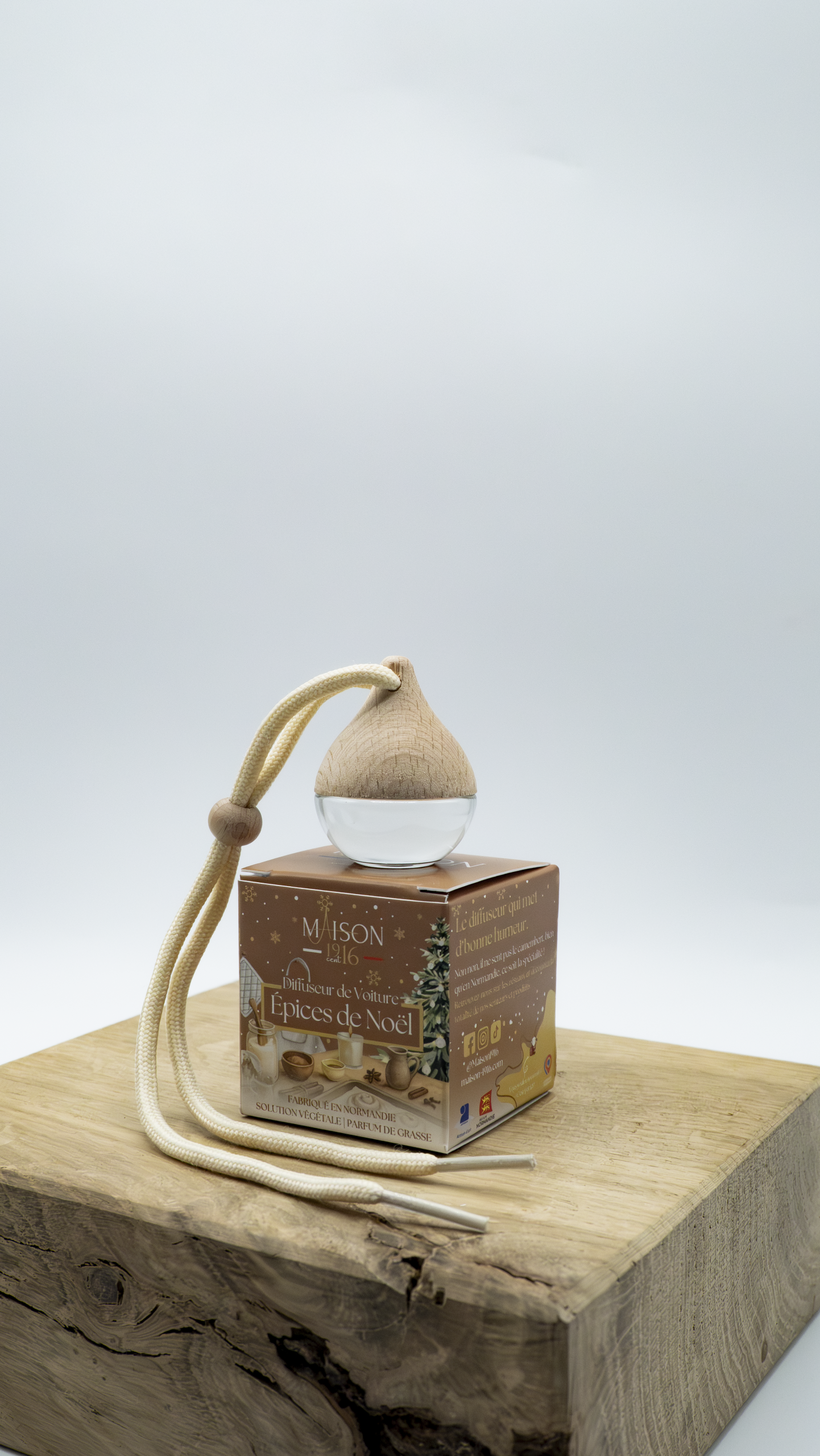 Diffuseur de voiture en verre avec son bouchon en bois brut, conçu pour absorber et diffuser le parfum en continu. Formulé avec une base végétale sans alcool et un parfum de Grasse. Un format élégant et naturel, idéal pour parfumer l’habitacle efficacement et en douceur.