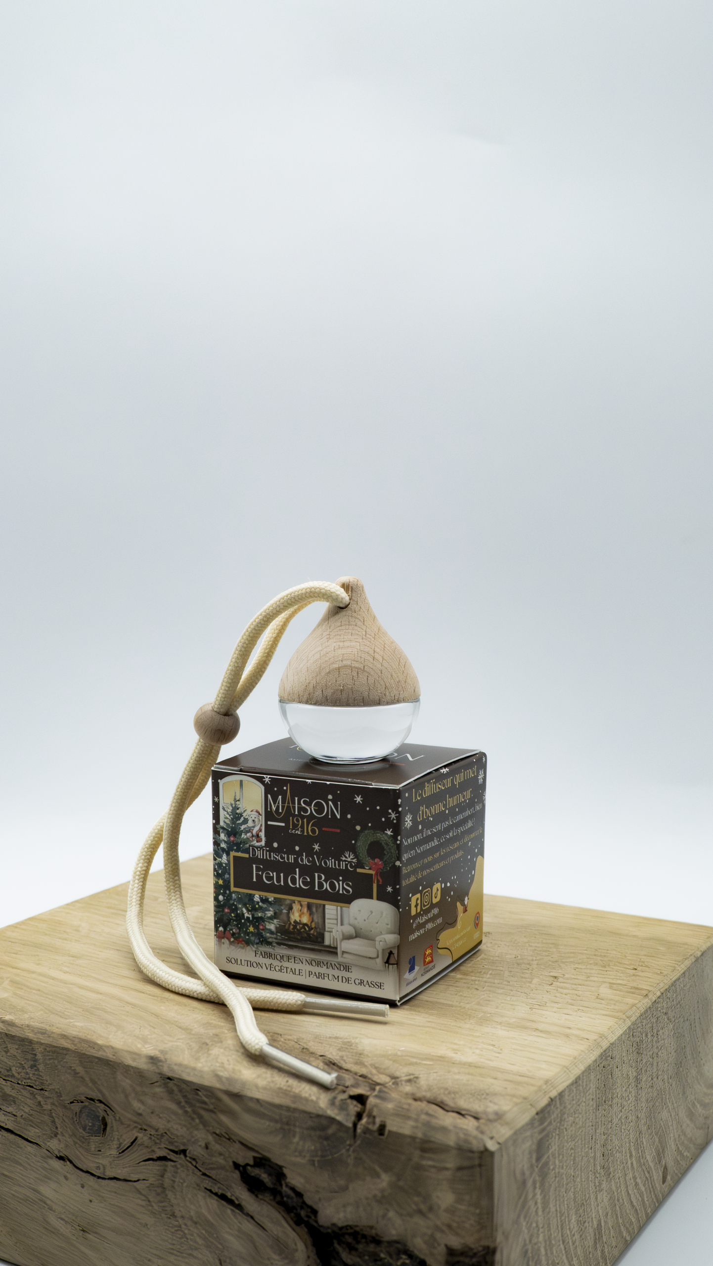 Diffuseur de voiture en verre avec son bouchon en bois brut, conçu pour absorber et diffuser le parfum en continu. Formulé avec une base végétale sans alcool et un parfum de Grasse. Un format élégant et naturel, idéal pour parfumer l’habitacle efficacement et en douceur.