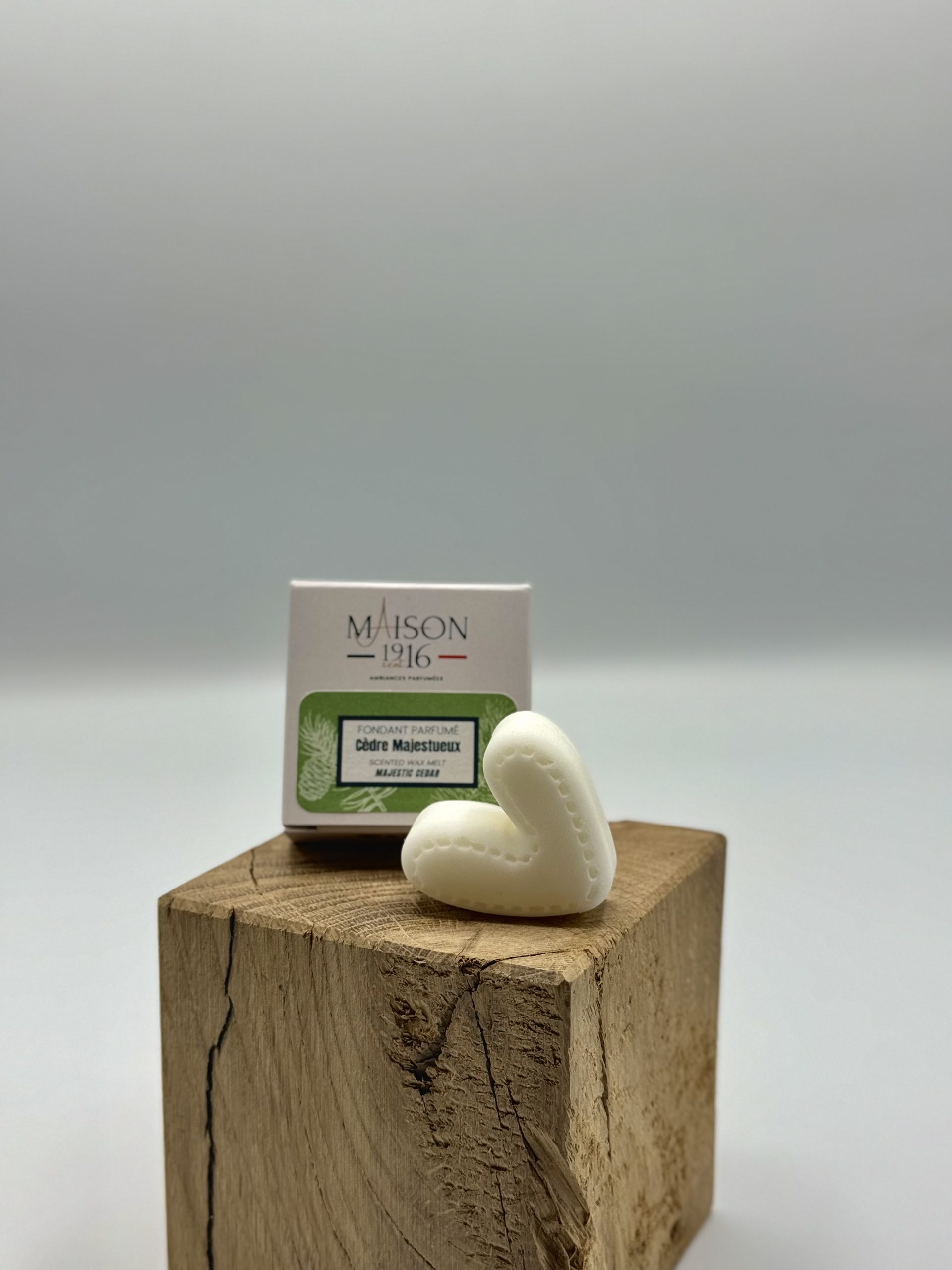 Cœur de cire parfumé, coulé à la main dans notre atelier. À faire fondre dans un brûle-parfum ou à glisser dans un tiroir ou une penderie. Composé de cire végétale de Colza Ecocert et de parfum de Grasse, il diffuse une senteur intense et durable. Un format pratique, idéal pour parfumer l’intérieur ✨