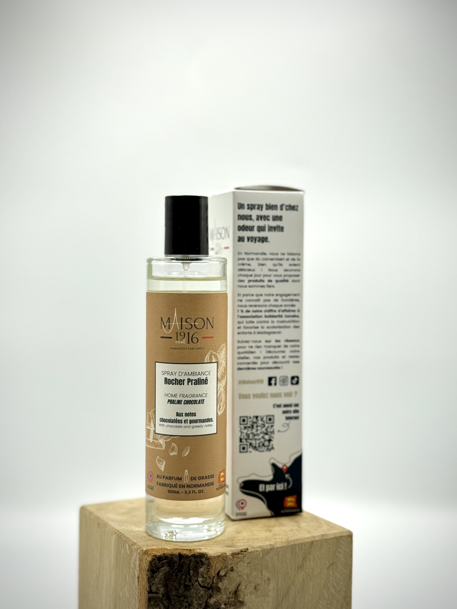 Vaporisez l’irrésistible parfum d’un cœur praliné enrobé de chocolat, dans un spray d’ambiance gourmand et généreux. Fabriqué en France, ce parfum évoque les fêtes, les petits plaisirs coupables et la magie d’une bouchée fondante.